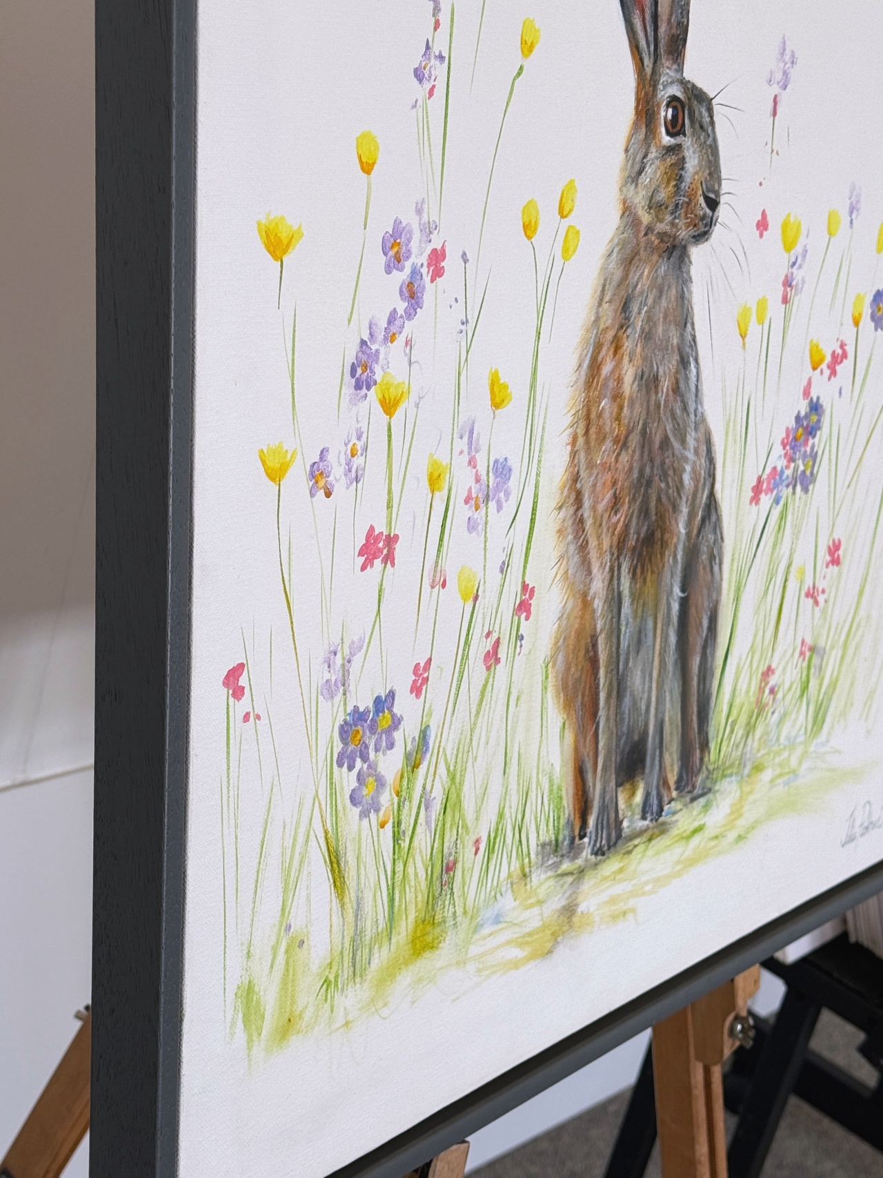 Florry original painting 61 x 61cm on stretched canvas in a dark grey floating frame 68 x 68cm. Painted in acrylic paint which is Julia’s preferred medium. If you would like more photographs please do not hesitate to contact us.
