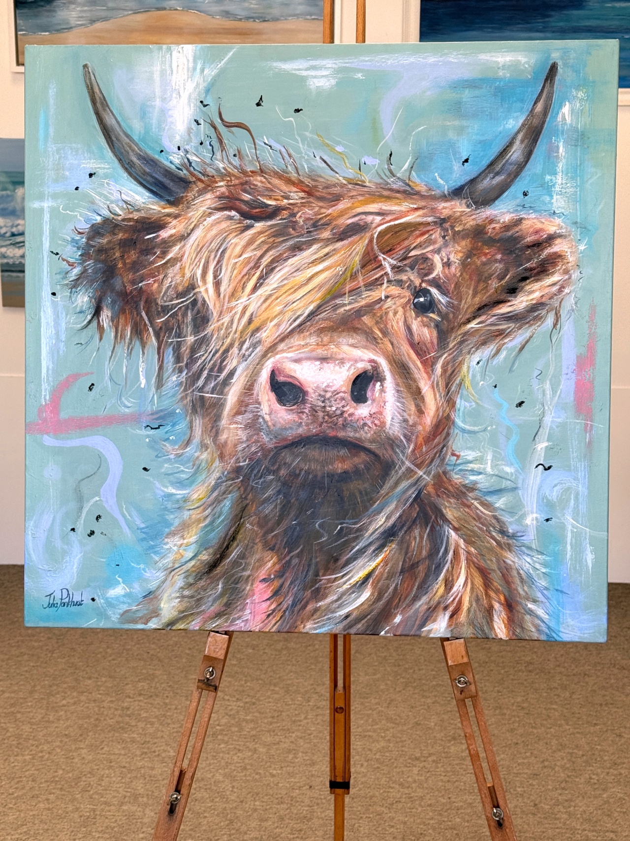 ‘Gordon’ from our highland cattle collection. Adorable blonde friendly Highland Cow.